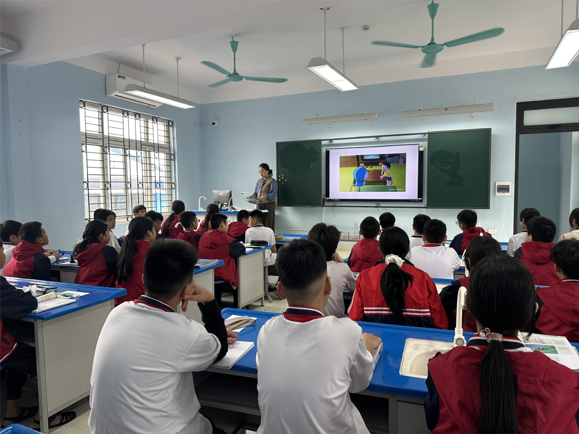 Thay vì những lời dẫn nhập khô khan, tiết học được mở đầu bằng một đoạn video hoạt hình ngắn về cuộc trò chuyện giữa Nobita và Doraemon xoay quanh vấn đề ô nhiễm không khí. Sự xuất hiện của hai nhân vật quen thuộc đã ngay lập tức thu hút sự chú ý, khơi gợi trí tò mò và giúp các em học sinh tự mình nhận diện vấn đề cốt lõi của bài học: Tình trạng không khí hiện nay ra sao và làm thế nào để bảo vệ không gian sống của chúng ta?
