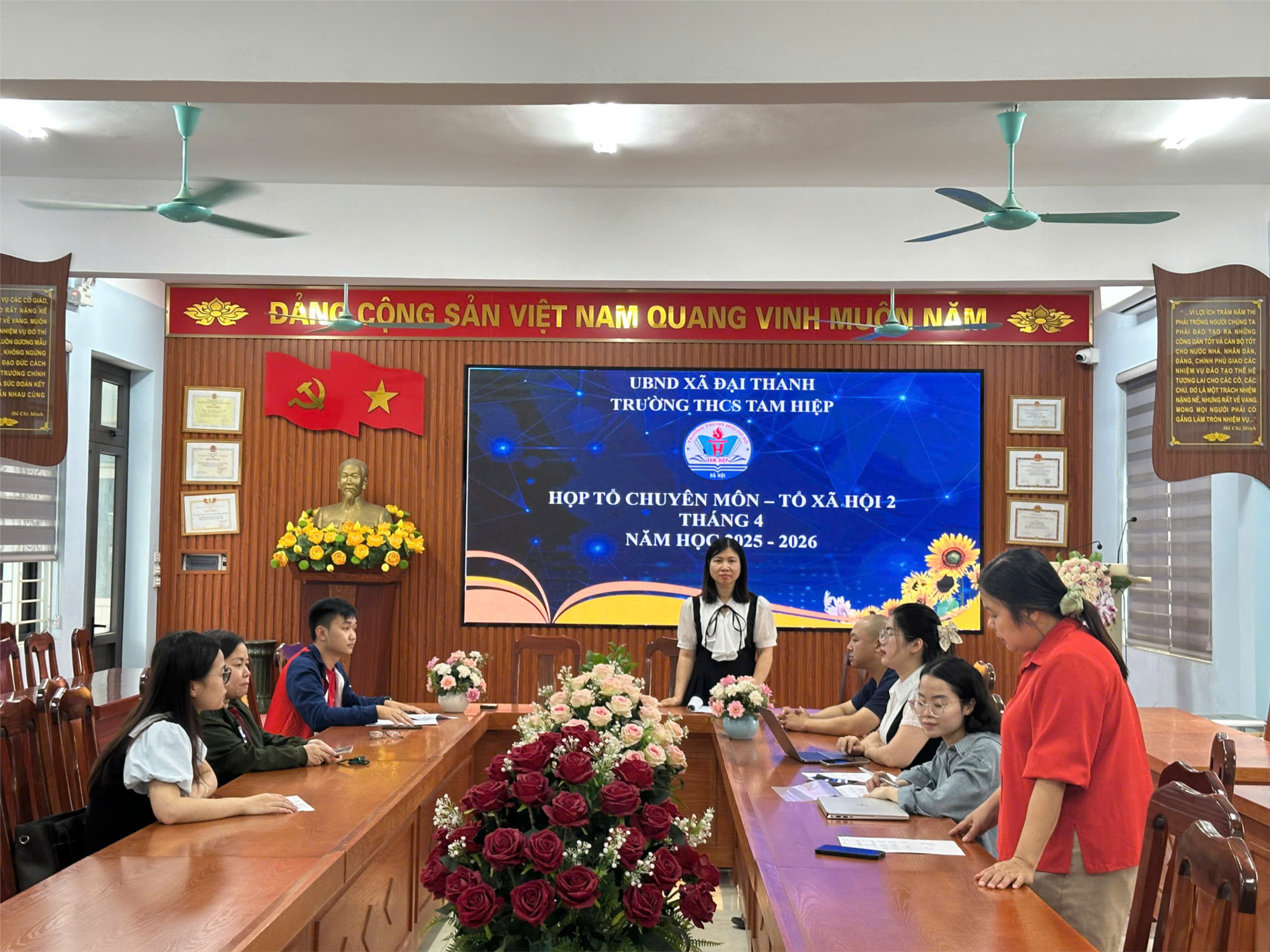 Sáng ngày 06/04/2026, tại phòng Tổ Xã hội 2, đồng chí Nguyễn Mai Hương đã chủ trì buổi sinh hoạt chuyên môn lần 1 tháng 4. Với sự tham gia đầy đủ của 10 thành viên, buổi họp tập trung vào công tác chuẩn bị cho giai đoạn cuối năm học và đổi mới phương pháp giảng dạy chuyên sâu.