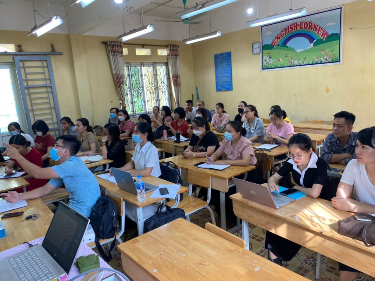 Thầy cô nhà trường trong buổi tập huấn môn Hoạt động trải nghiệm sáng tạo
