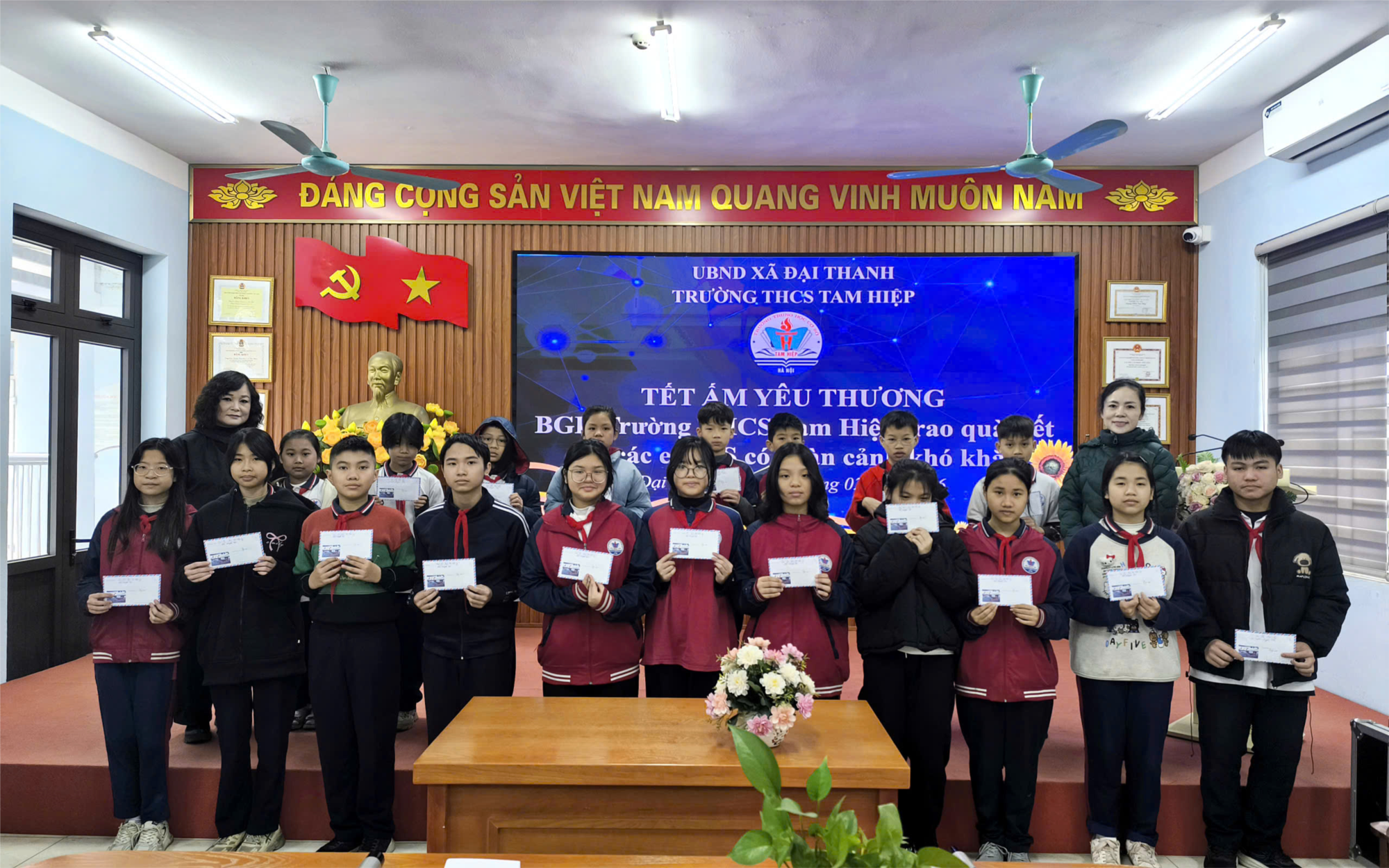 Sáng ngày 10/2, Ban Giám hiệu Trường THCS Tam Hiệp đã tổ chức hoạt động “Tết ấm yêu thương”, trao quà Tết cho các em học sinh có hoàn cảnh khó khăn, nhằm động viên, sẻ chia và mang đến một mùa xuân ấm áp, trọn vẹn hơn cho các em.