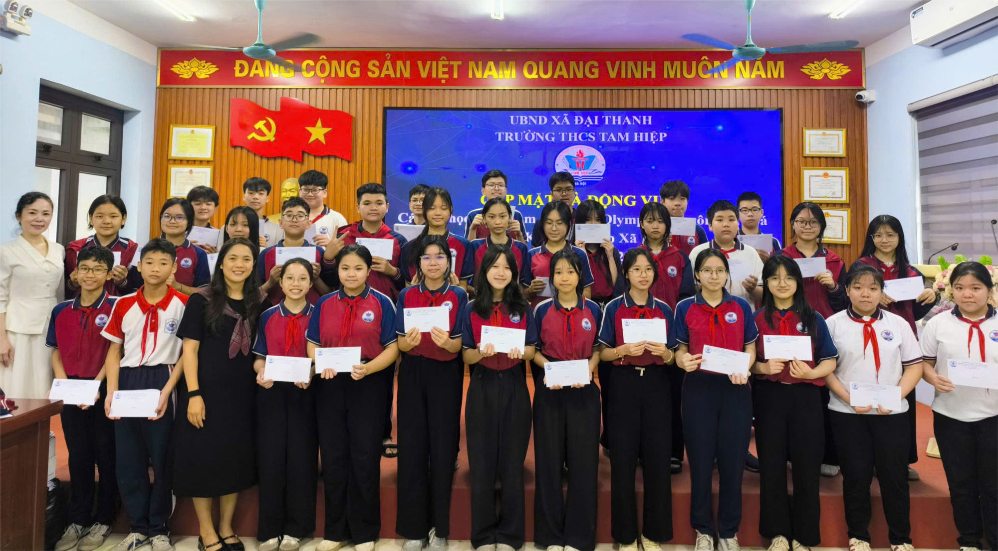 Sáng ngày 02/04/2026, tại Phòng Hội đồng Sư phạm, Trường THCS Tam Hiệp đã tổ chức buổi gặp mặt và động viên các em học sinh tham gia kỳ thi Olympic các môn văn hoá khối 6, 7, 8 cấp xã năm học 2025–2026.
