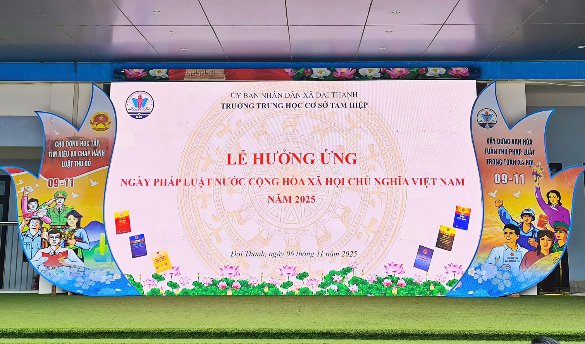 Hòa chung không khí thi đua sôi nổi trong cả nước hướng tới Ngày Pháp luật Việt Nam (9/11), nhằm nâng cao nhận thức, ý thức sống và làm việc theo Hiến pháp và pháp luật trong cán bộ, giáo viên, nhân viên và học sinh; thực hiện Kế hoạch số 257 ngày 24/9/2025 của UBND Thành phố Hà Nội về việc hưởng ứng “Ngày Pháp luật nước Cộng hòa XHCN Việt Nam” trên địa bàn thành phố năm 2025, ngày 06/11/2025, Trường THCS Tam Hiệp long trọng tổ chức Lễ hưởng ứng Ngày Pháp luật nước Cộng hòa xã hội chủ nghĩa Việt Nam.