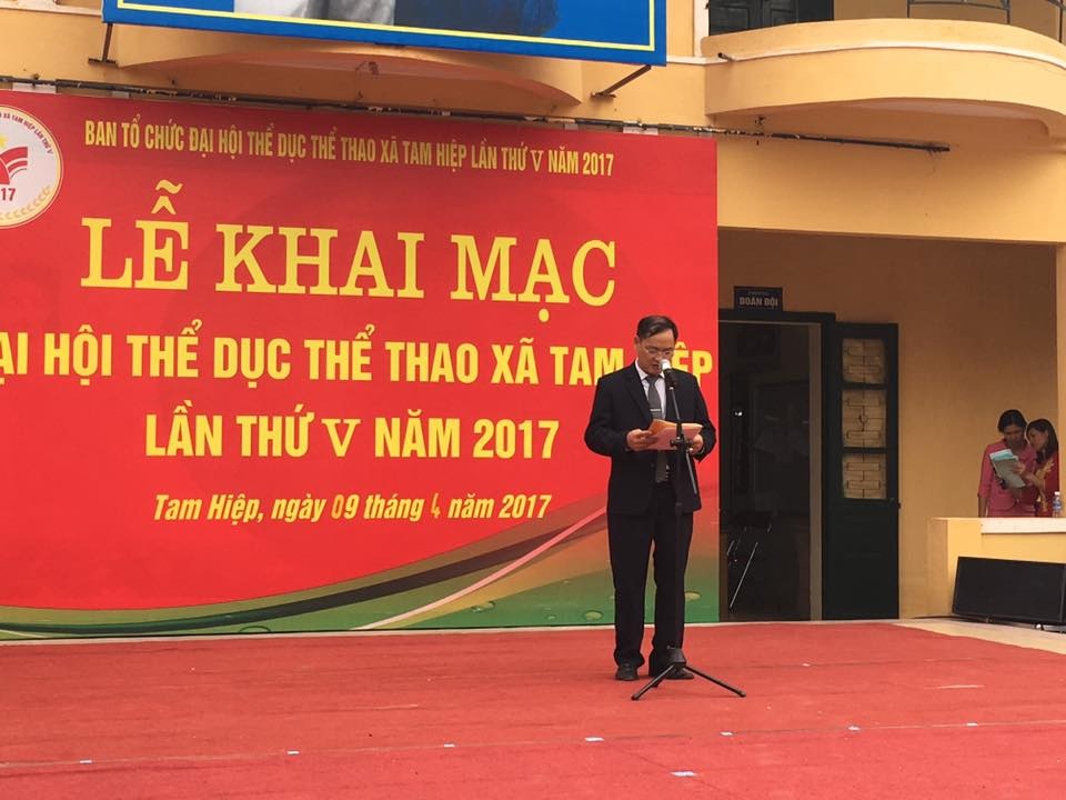 Sau khi các thành phần đã ổn định vị trí là phần chào cờ,tuyên bố lý do khai mạc ĐH.Tiếp đó,Đ/c Ngô Ngọc Toàn-CT UBND Xã đọc diễn văn khai mạc ĐH.Kế tiếp,Đ/c Trình Quốc Thắng đọc thư của Bác Hồ kêu gọi ND cả nước luyện tập TDTT rèn luyện thân thể để xây dựng đất nước giàu mạnh.Sau đó,đại diện khối vận động viên,đại diện khối trọng tài lên phát biểu tuyên thệ thi đấu hết mình,ferplay,trung thực,khách quan.
