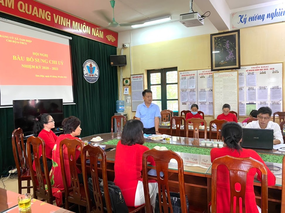 Trước tình hình thực tế là hạn chế tiếp xúc đông người, việc sử dụng CNTT trong hội họp trực tuyến cần được triển khai hơn lúc nào hết. GV chủ yếu dạy học online tại nhà, ít đến cơ quan, BGH nhà trường đã tổ chức các cuộc họp trực tuyến qua Zoom như: Họp Chi bộ, họp hội đồng, họp Tổ nhóm chuyên môn...đảm bảo chất lượng cuộc họp cũng như thực hiện đúng chỉ thị 15 của Chính phủ. Chiều ngày 05/10/2021, nhà trường có tổ chức họp bầu Ban chi ủy, Bí thư chi bộ mới, họp trù bị Hội nghị CB-VC đầu năm học 2021-2022 cho CB-GV-NV ứng dụng hiệu quả CNTT. Cụ thể, nhà trường bố trí 3 phòng họp: Một điểm cầu trực tiếp là phòng Hội đồng và 2 phòng họp trực tuyến(Lớp 6A1 và 9A6) kết nối qua hệ thống Zoom từ laptop lên máy chiếu, đảm bảo tốt hai yếu tố âm thanh và hình ảnh từ phòng họp chính. Các phòng có bố trí đủ loa và mic, hình ảnh được truyền trực tiếp qua hệ thống máy chiếu. Việc bầu cử Chi ủy và Bí thư chi bộ diễn ra nhanh gọn và khách quan, tổ kiểm phiếu mang hòm phiếu lưu động đến từng phòng họp cho các Đ/c Đảng viên bỏ phiếu đúng quy định. Các cuộc họp đã thu được kết quả tốt. Việc ứng dụng CNTT đã giúp cuộc họp vừa bổ sung kiện toàn cấp uỷ chi bộ, vừa đảm bảo nguyên tắc 5K, an toàn phòng chống dịch, vừa phát huy tối đa quyền dân chủ trong tập thể!