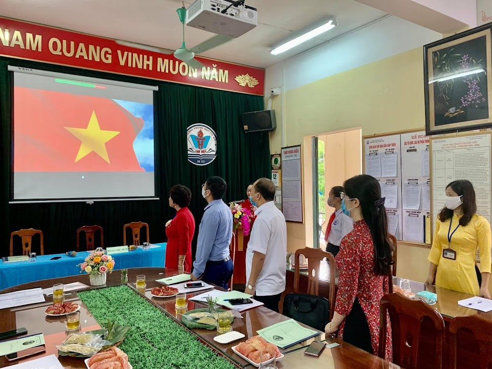 Tại Hội nghị, đồng chí Phạm Văn Ngát-Trưởng phòng GD&ĐT Huyện đã phát biểu động viên, ghi nhận những thành tích, cố gắng của tập thể nhà trường đồng thời cũng định hướng một số nhiệm vụ để nhà trường duy trì và phát huy hiệu quả những thành tích đã đạt được ở năm học trước. Hội nghị cũng nhận được những ý kiến chỉ đạo của đại diện Liên đoàn Lao động huyện, Đảng ủy xã. Thay mặt đoàn chủ tịch, đồng chí Vũ Thanh Tiến đã cảm ơn và tiếp thu ý kiến chỉ đạo của đại diện các cấp lãnh đạo trong việc thực hiện nhiệm vụ năm học 2021 – 2022.