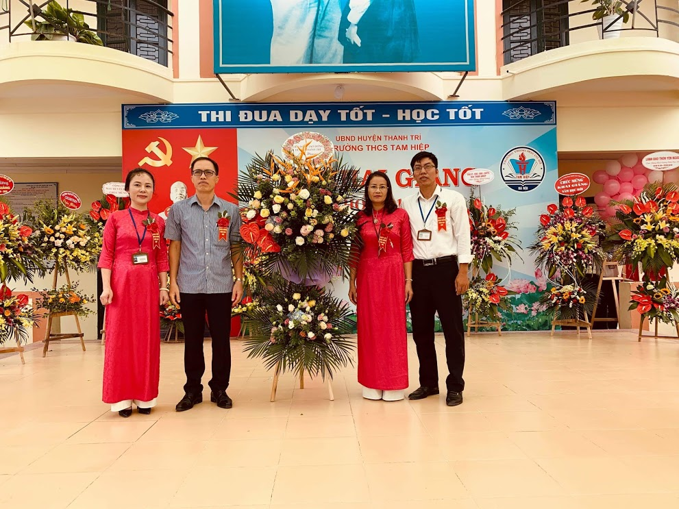 Đến dự với nhà trường trong buổi Lễ long trọng và đầy ý nghĩa này, về phía lãnh đạo Huyện: Có ông Lương Anh Dũng- Huyện ủy viên- chủ tịch liên đoàn lao động Huyện Thanh Trì.Về phía lãnh đạo Xã: có Ông Trình Quốc Thắng - PCT UBND Xã Tam Hiệp;Ông Nguyễn Ngọc Ánh-Phó Bí thư thường trực Đảng ủy-Chủ tịch HĐND Xã; Cùng Đại diện thôn Tựu Liệt; Thôn Yên Ngưu; Thường trực Ban đại diện CMHS nhà trường; Đại diện CLB Doanh nghiệp trên địa bàn Xã; Đại diện Trung tâm Tiếng Anh Bình Minh. Công ty du lịch Hà Nội Viet Nam tourist,công ty nước uống tinh khiết Lusty ,nhà may Huyền Phạm; Trung tâm kĩ năng sống... gửi lẵng hoa chúc mừng. Đó là niềm động viên khích lệ lớn đối với các thầy cô giáo và các em học sinh trong nhà trường.