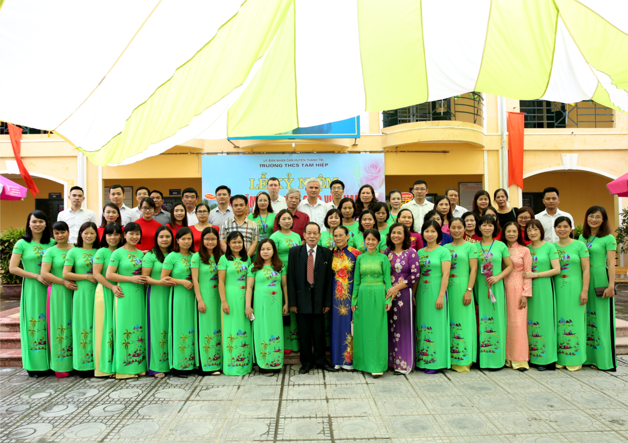 Mở đầu buổi Lễ kỉ niệm như thường lệ là Nghi lễ chào cờ,tuyên bố lý do và giới thiệu đại biểu.Đến dự và động viên nhà trường,về phía đại biểu Huyện có Đ/c Lương Anh Dũng- Chủ tịch Liên đoàn Lao động Huyện Thanh Trì,về phía đại biểu Xã có Đ/c Trình Quốc Thắng- Phó CT UBND Xã Tam Hiệp.Thường Trực Ban đại diện CMHS có Bà Nguyễn Thị Thanh Hà.Ngoài ra còn có các đại biểu đại diện Câu lac bộ Doanh nghiệp đóng trên địa bàn Xã,đại diện Công ty Tiếng Anh Bình Minh-Liên kết yếu tố nước ngoài,đại biểu là các thầy cô hưu trí từng đảm nhiệm chức vụ lãnh đạo và giảng dạy trong nhà trường.Về phía nhà trường,có cô giáo Đào Thị Phượng-Hiệu trưởng;cô giáo Đỗ Huyền Thơ- Hiệu phó cùng gần 40 thầy cô giáo đang làm nhiệm vụ trực tiếp giảng dạy tại trường.Tiếp đó,cô giáo Nguyễn Thị Hiền giới thiệu đại biểu khách mời lên tặng hoa và gửi những lời chúc mừng tốt đẹp dành cho nhà trường,các thầy cô giáo,các em học sinh.