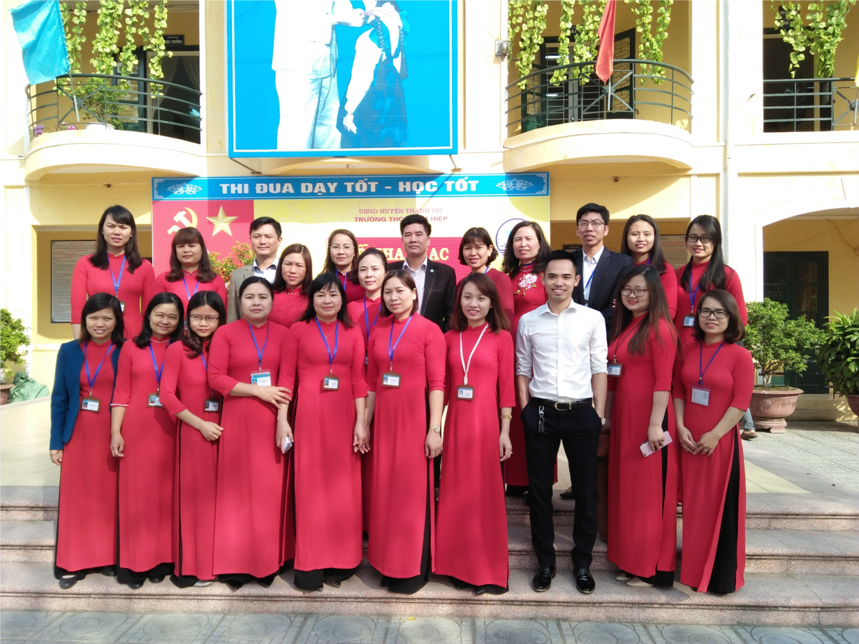 Các vị đại biểu khách mời chụp ảnh lưu niệm với CB-GV-NV nhà trường.