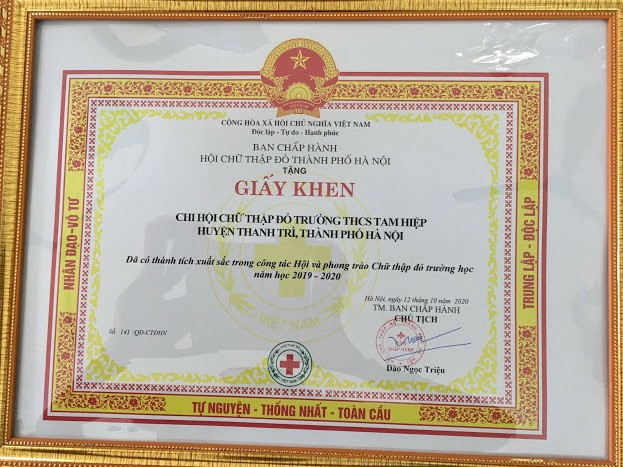 Đến dự có các Đ/c đại biểu HĐND - UBND - Hội chữ thập đỏ Huyện; đại diện BGH các nhà trường trên địa bàn Huyện. Trong Lễ Tổng kết này, trường THCS Tam Hiệp vinh dự là một trong số ít đơn vị tiêu biểu được trao tặng giấy khen của BCH Hội chữ thập đỏ Thành phố: "Đạt thành tích xuất sắc trong công tác Hội và phong trào chữ thập đỏ trường học năm học 2019-2020. Đây là niềm vinh dự lớn đối với thầy và trò nhà trường.